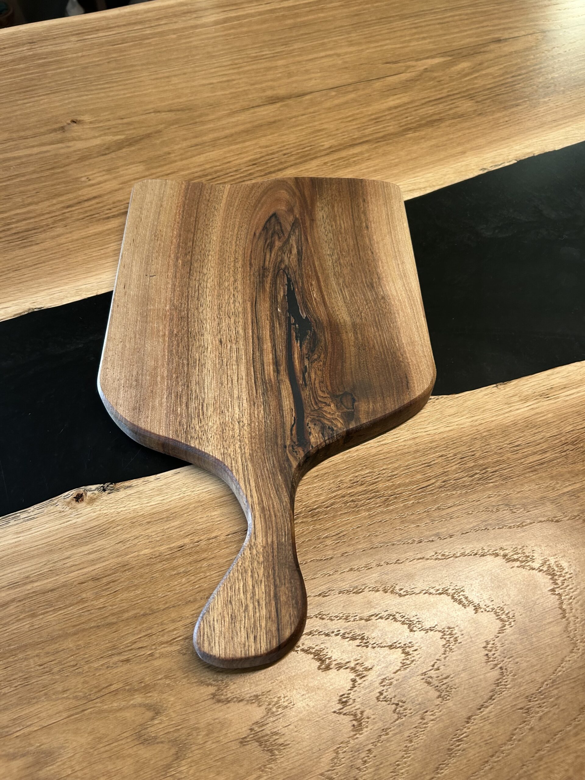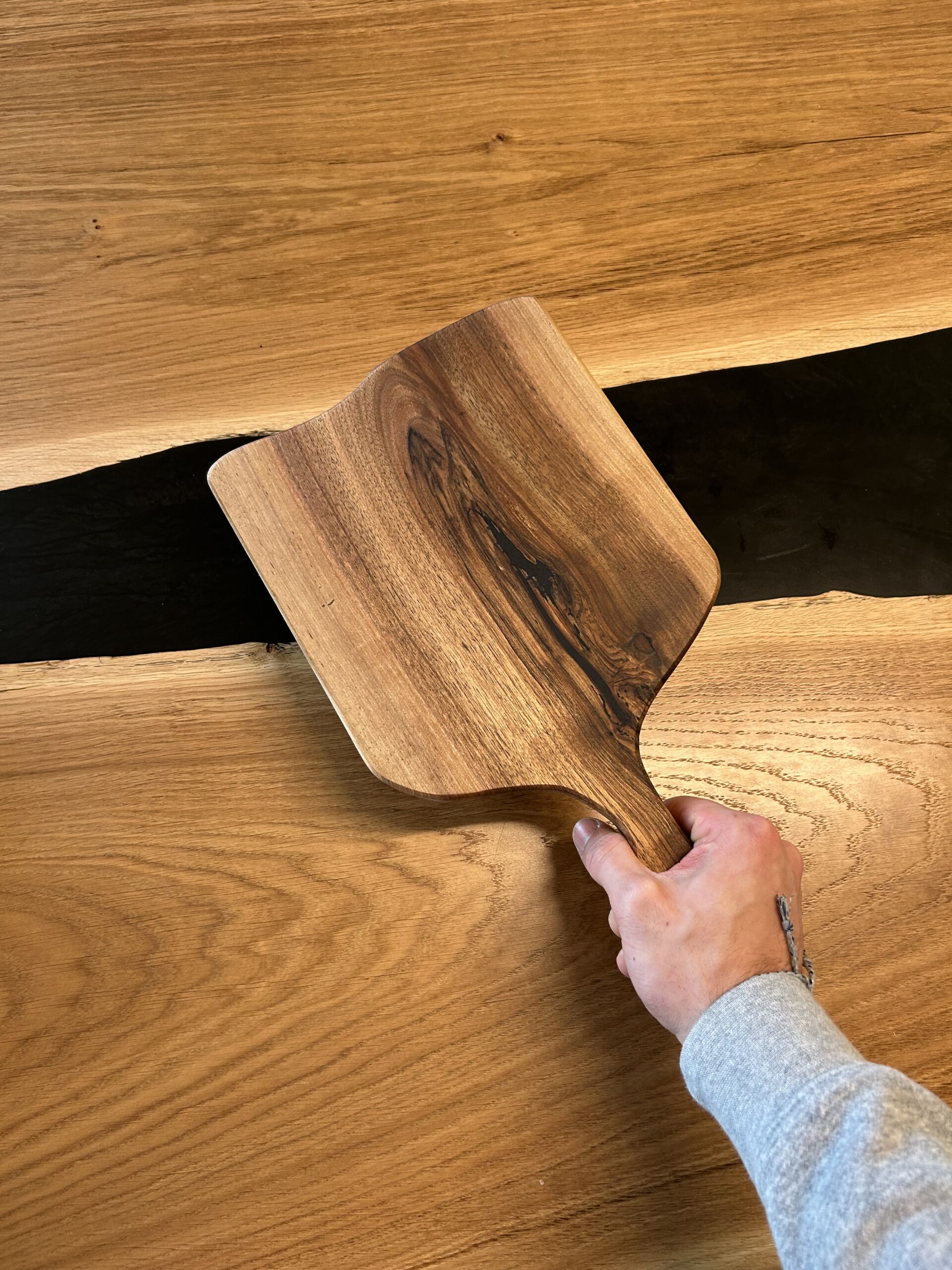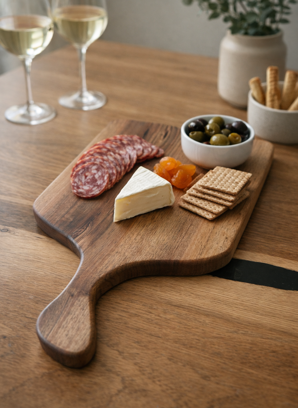 Planche à apéro en noyer massif, fabriquée artisanalement : un bois noble aux teintes chaleureuses, chaque pièce est unique.