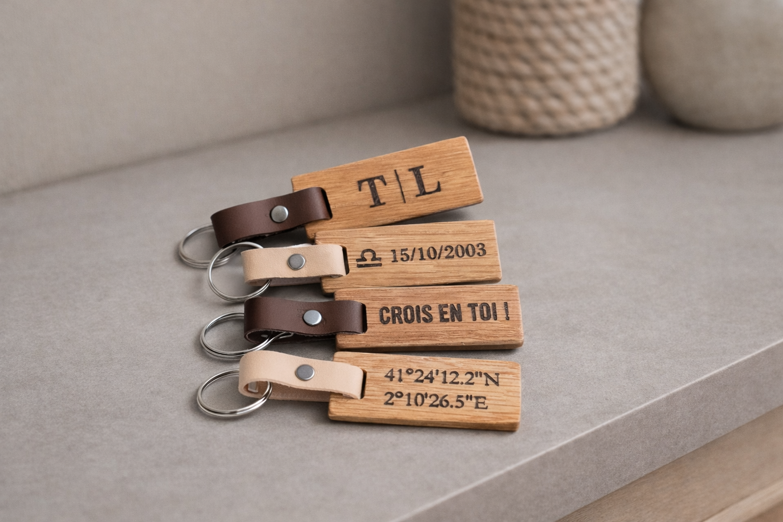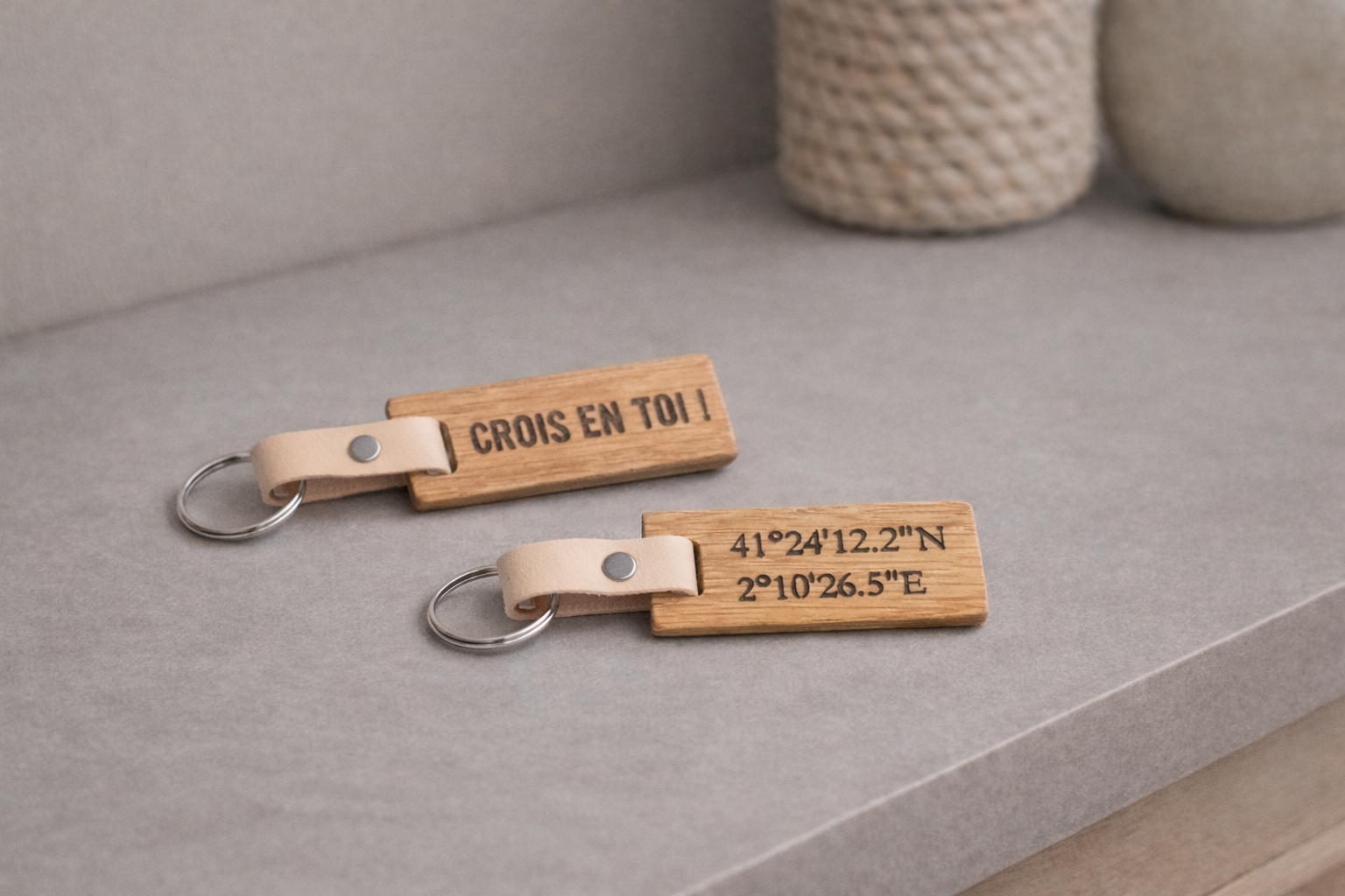 Offrez un cadeau qui a du sens et laissez une empreinte unique grâce à ce porte-clés gravé, parfait pour ceux que vous aimez.
